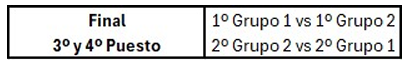 - Partido 3: Perdedor P1 vs Perdedor P2 (el perdedor desciende).