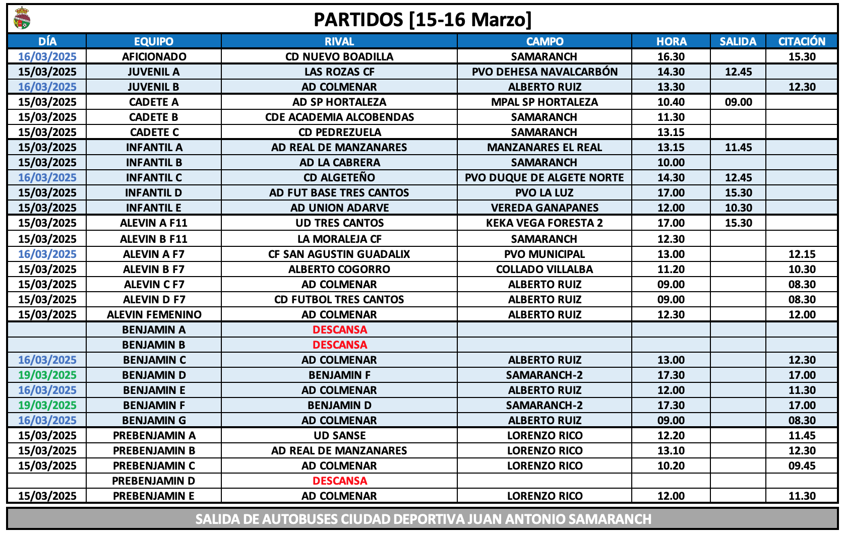 Horarios 15-16 Marzo
