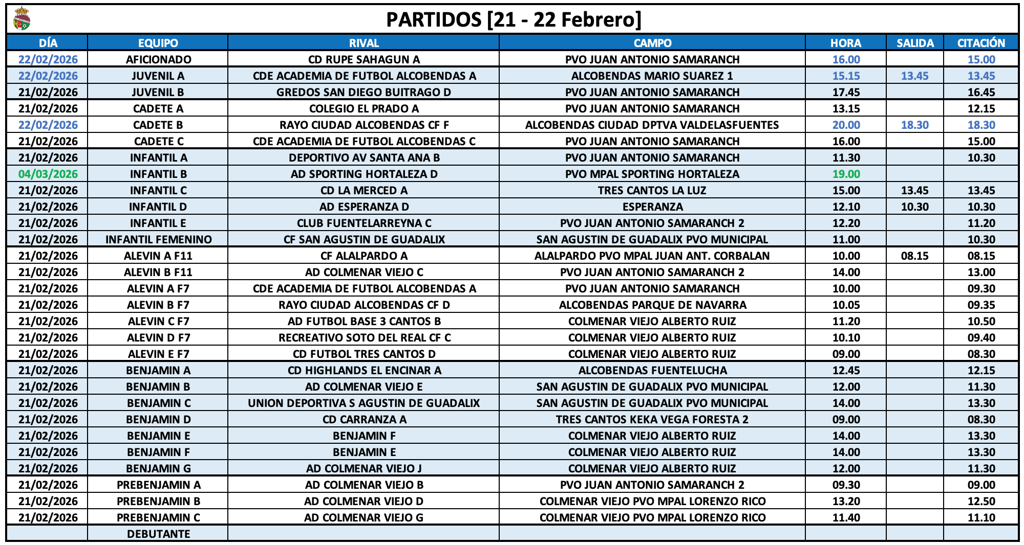 Horarios 21-22 Febrero