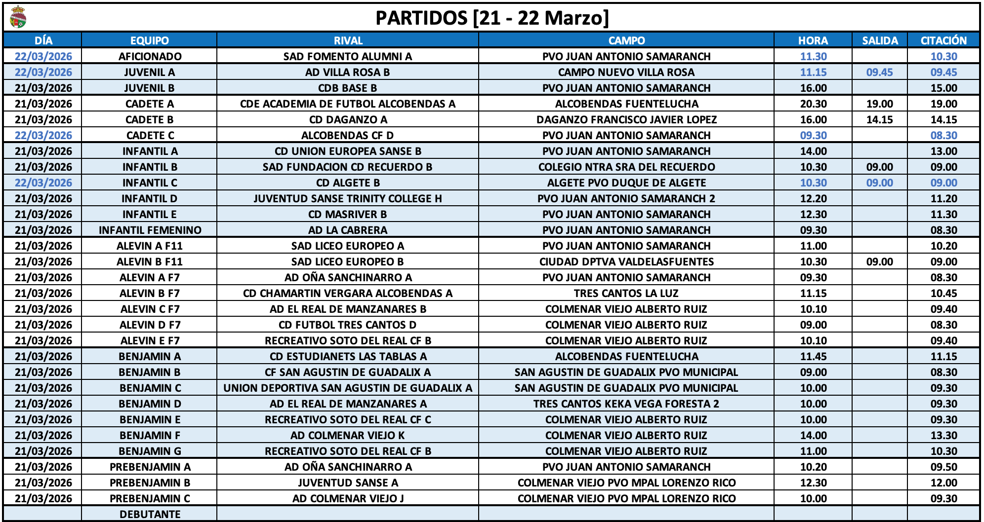 Horarios 21-22 Marzo