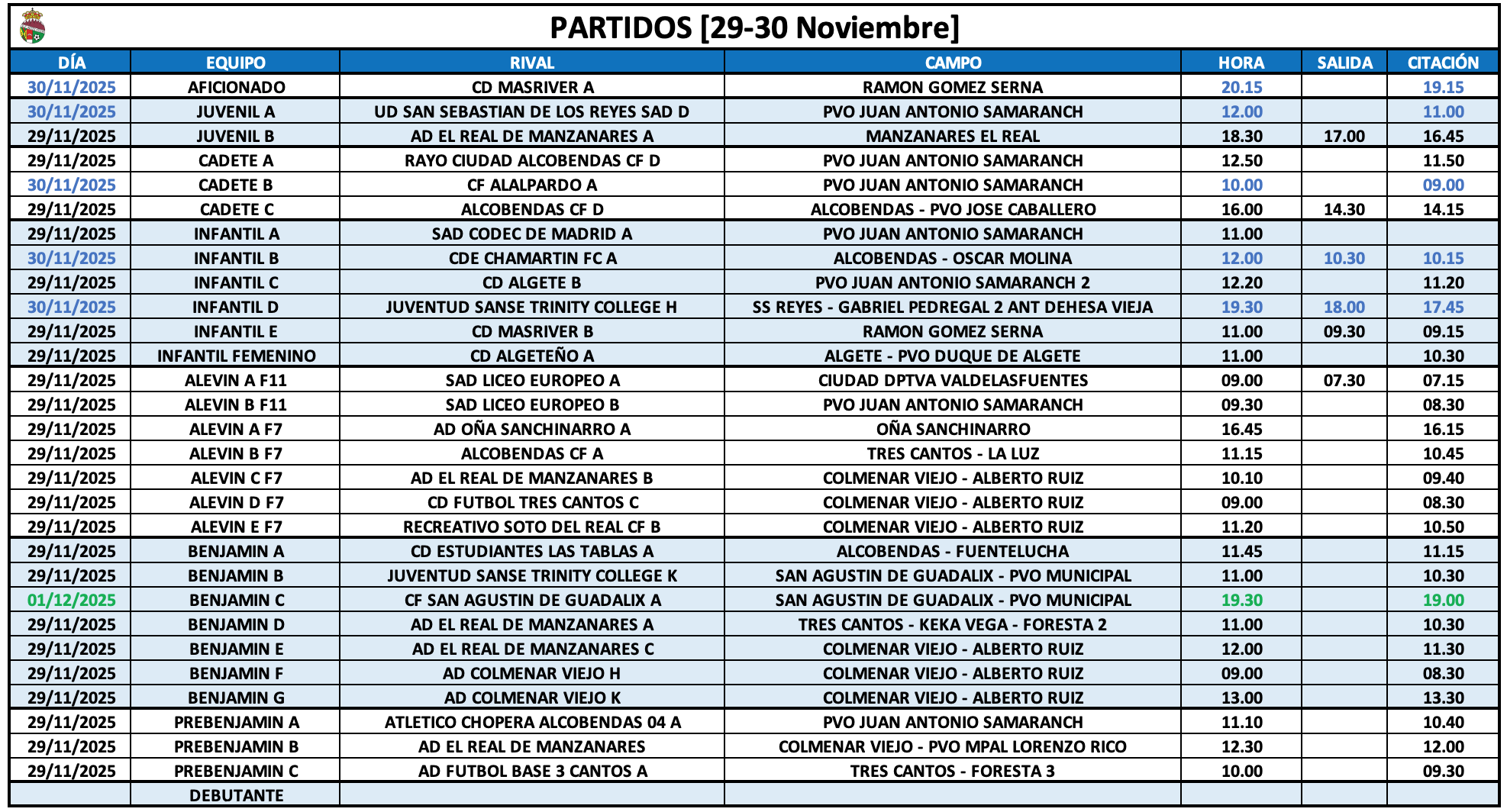 Horarios 29-30 Noviembre