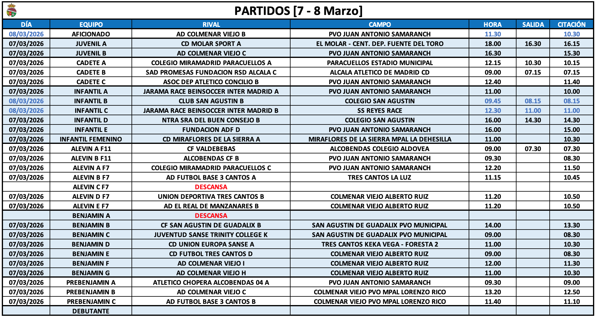 • Horarios 7-8 Marzo