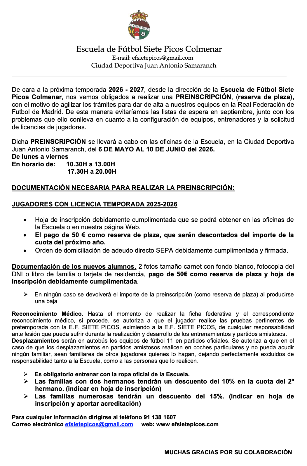 Hoja de Inscripción: